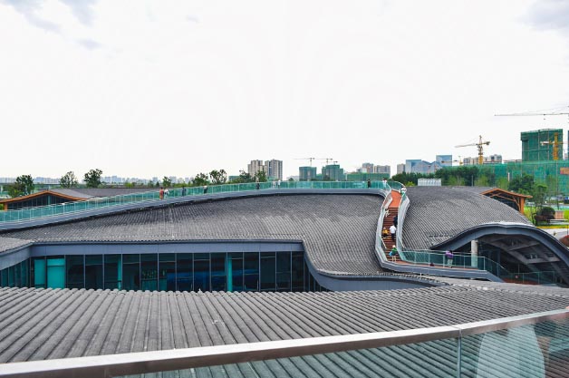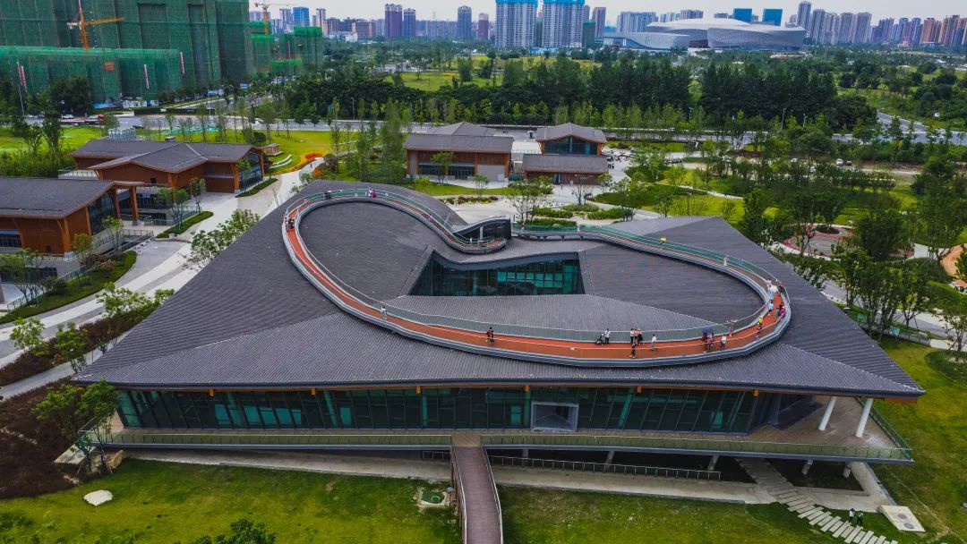 走进位于环城生态公园北段的蜀道通衢园,循着园区道路,很快就找到了“屋顶绿道”所在的建筑,而这个建筑有个非常诗意的名字——起风的院子。