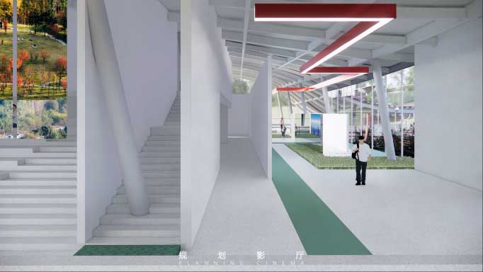 据介绍,“起风的院子”设计功能为环城生态公园展厅。在展厅里将呈现整个环城生态公园的建设过程和整体情况,以及特色景点、特色建筑、沙盘模型等,给游客带来沉浸式的环城生态公园展示体验。而设计团队也希望借由“屋顶绿道”的“网红体质”,为环城生态公园北段带来更多人气,营造更多元的场景。