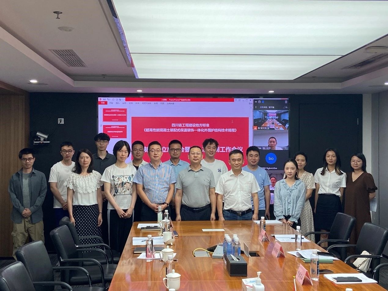 近日,市建筑院主编的四川省工程建设地方标准《超高性能混凝土装配式保温装饰一体化外围护结构技术规程》(以下简称《规程》)编制组成立暨第一次工作会议圆满召开。成都设计咨询集团有限公司副总经理徐军;市建筑院党委委员、总工程师陈彬,党委委员、设计一院院长丁焕龙参加会议。