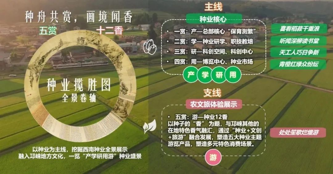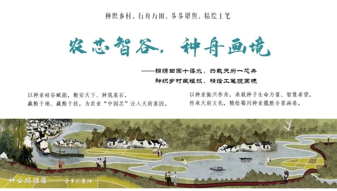 以“农芯智谷”赋能,藏粮于地、藏粮于技,以“种舟画境”的工笔精绘,应对“产镇村”割裂之态,写实一幅“鸟归林聚,田链绿岛”“藏粮于技,播厥百谷”“活力共享,近悦远来”的高颜值、高能级、高品质全景画卷。