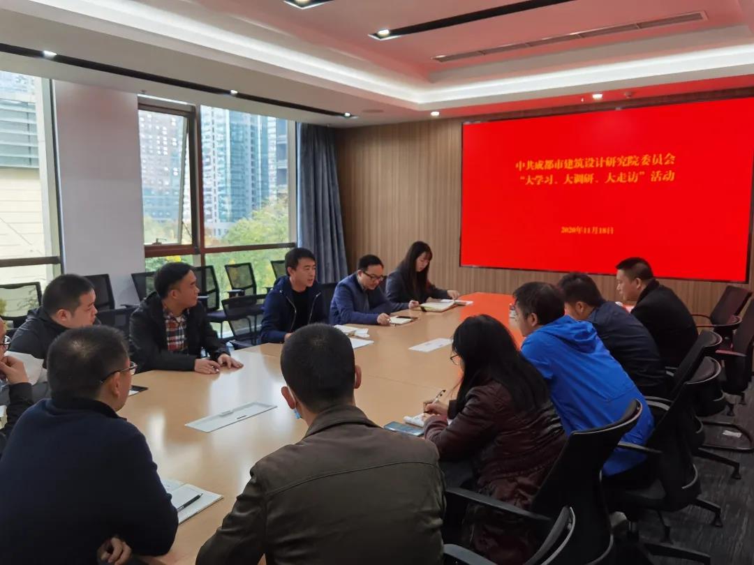 1月20日,院总建筑师刘民组织召开宣贯学习会议,并对分管部门进行调研。刘民强调:各部门要加强联系与协同,做好一体化服务工作,要勇于探索、积极创新,主动融入成都的快速发展当中,把握战略思维站高谋远,提升理念、放开眼界,把握建设成渝双城经济圈的历史机遇,设计出一批满足人民对美好生活向往的优质作品,营造消费场景、生活场景。