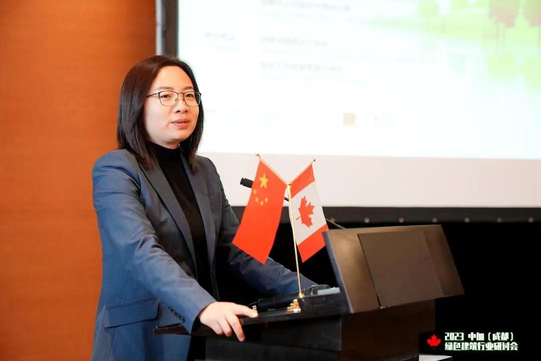 2月22日,由加拿大驻重庆总领事馆、成都市人民政府外事办公室主办,成都市勘察设计协会、加拿大驻成都贸易代表处承办的2023中加(成都)绿色建筑行业研讨会在成都召开。加拿大驻重庆总领事馆副总领事谭咏诗(Samantha TAM),成都设计咨询集团副总经理、成都市勘察设计协会理事长徐军,成都市外办美大处副处长熊敏,中加建筑行业相关企业、绿色建筑材料、产品设备及技术服务供应商、商(协)会等80余名代表出席活动。
