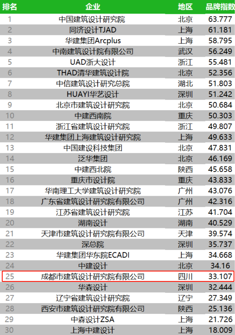 近年来,市建筑院以公园城市美好蓝图为愿景,助力成都建设践行新发展理念的公园城市示范区,品牌影响力持续提升。此次获评,是公司企业品牌力、行业影响力、核心竞争力的充分展现,未来我们将进一步贯彻战略目标,奋力成为具有国际影响力的设计咨询领军企业。