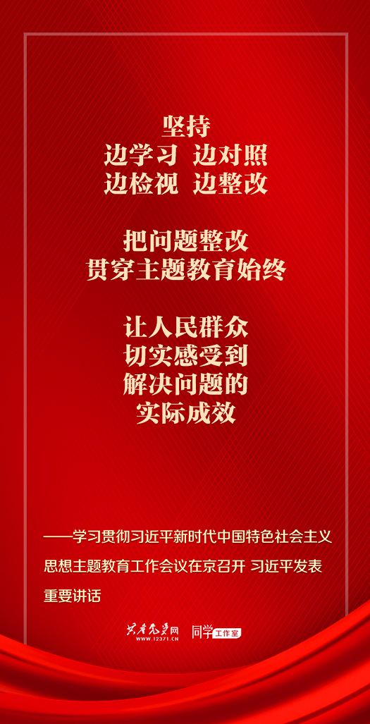 ●坚持边学习、边对照、边检视、边整改,把问题整改贯穿主题教育始终,让人民群众切实感受到解决问题的实际成效。