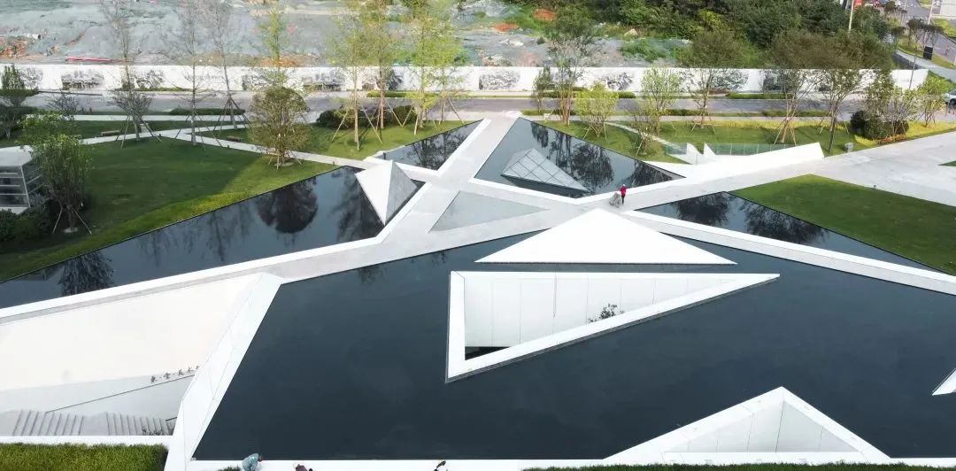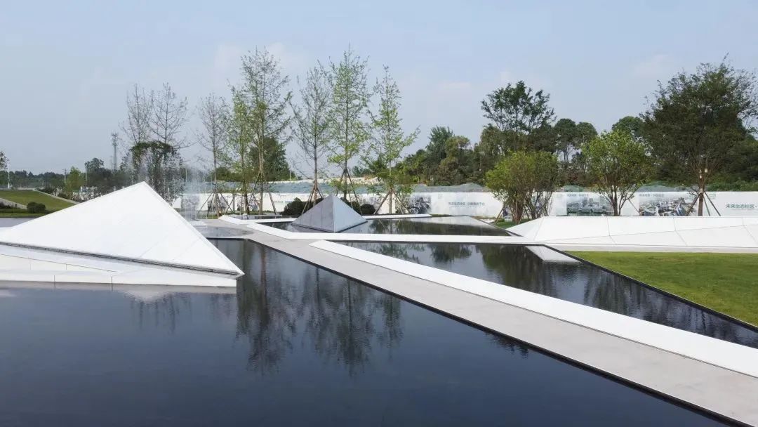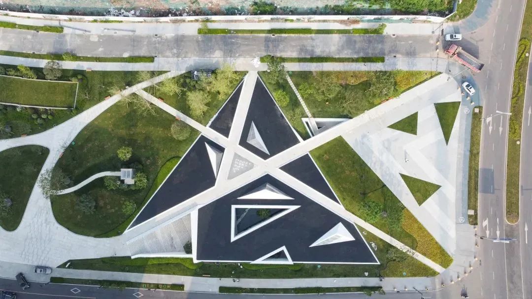作为成都东部新区首座公共美术馆,東·壹·美术馆外观造型以经典的三角形状作为基础元素,展现出错落有致的层次感、立体感、流动感,创新采用下沉庭院式建筑结构,主体隐于城市公园下方,营造出山川、湖泊交相辉映的自然景象,将艺术之“品”与自然之“境”完美融合,是新区未来文化交流、风貌展示和市民美育普及的重要窗口。