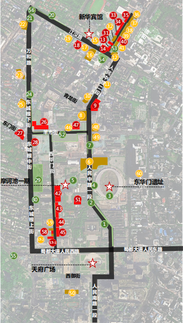 “三个颜色分别代表不同类型的改造提升点位,一共是60个。”成都设计咨询集团·市建筑院设计师何昱婧在介绍改造项目核心片区点位总图时表示,红色的是建筑综合提升点位,黄色的是建筑专项提升点位,绿色的是景观提升点位,三种颜色三类改造提升点位一目了然,目前均已完工。