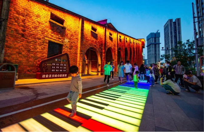项目深入落实街道一体化导则及成都公园城市要求,重点对东郊记忆路、圣灯路、建设南路、建设南支路四条街道业态进行升级重塑,以东郊记忆路为业态核心,打造“时尚潮流+夜经济生活消费”的业态场景,在唤醒成华工业文明记忆的同时植入现代设计手法,满足周边居民日常生活需求。