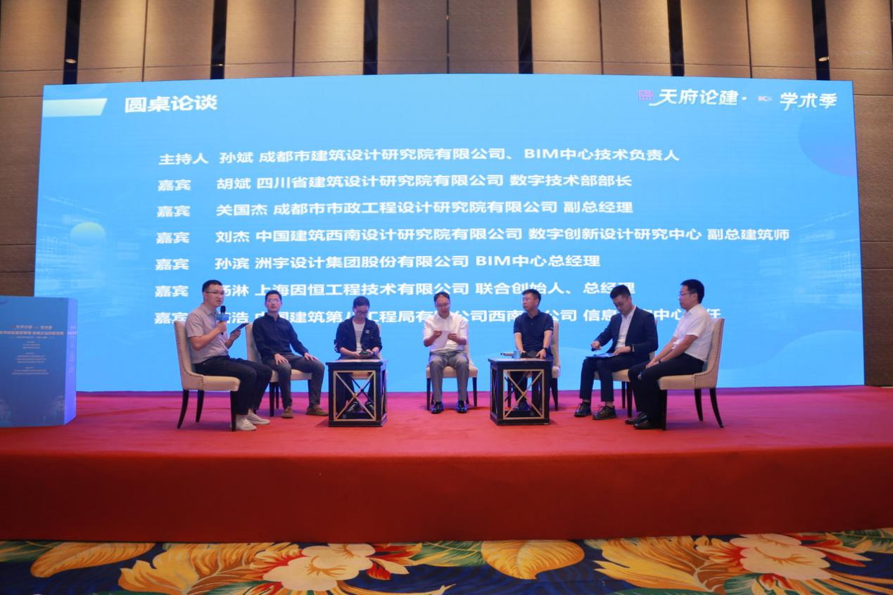 圆桌对话上,中建西南院、四川省建筑院、市市政院、市建筑院、广联达科技股份有限公司、上海因恒工程技术有限公司、中国建筑第八工程局有限公司西南分公司等企业的数字化工作负责人及技术专家围绕企业数字化转型的痛点及难点、不同规模企业数字化转型关注点的异同以及数字化转型人才引进或培养的建议三个议题进行了研讨交流。