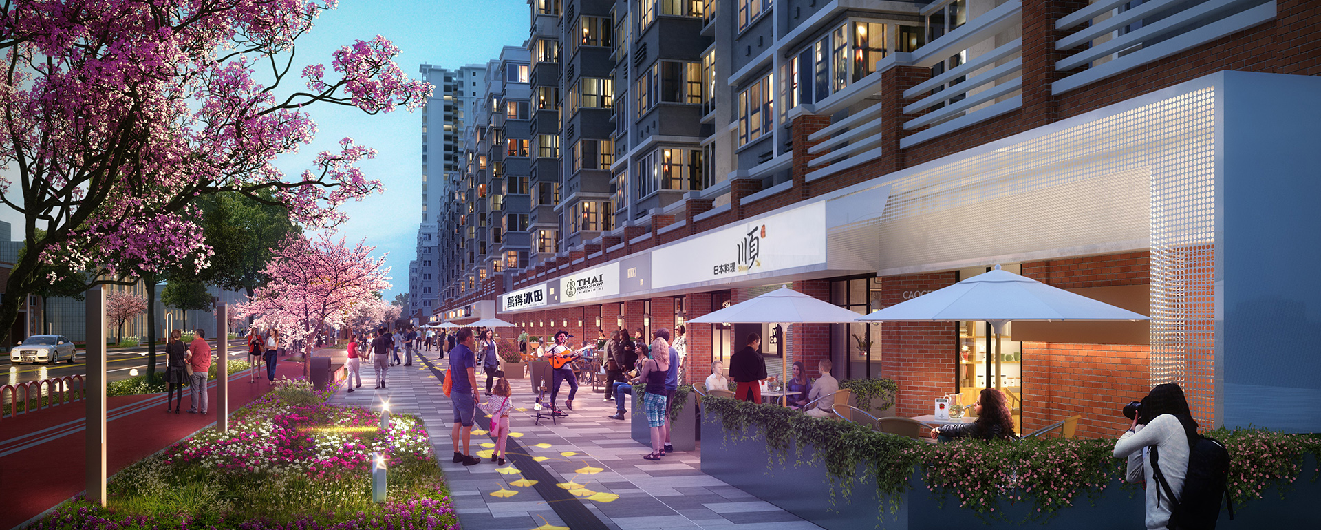 项目深入落实街道一体化导则及成都公园城市要求,重点对东郊记忆路、圣灯路、建设南路、建设南支路四条街道业态进行升级重塑,以东郊记忆路为业态核心,打造“时尚潮流+夜经济生活消费”的业态场景,在唤醒成华工业文明记忆的同时植入现代设计手法,满足周边居民日常生活需求。