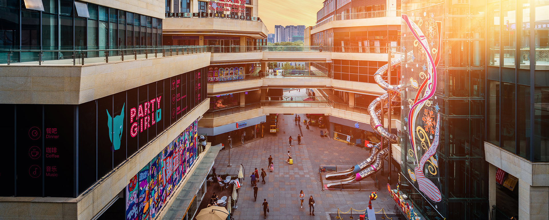 设计依托周边成熟居住片区环境以及动物园吸引的消费人流优势,突破传统商业格局束缚,营造较大规模一站式、开放型、体验型综合商业购物中心、购物公园,形成“公园+商业”的有机结合,实现城市环境与商业利益的共赢,营造核心商业口岸价值。